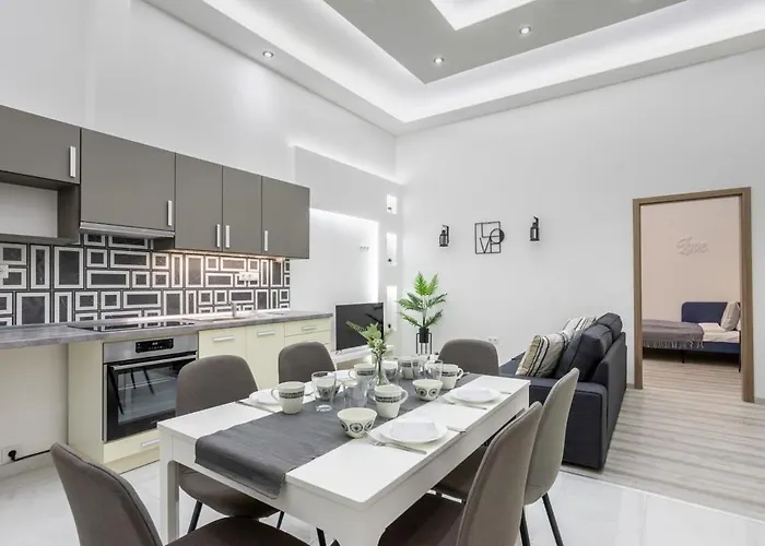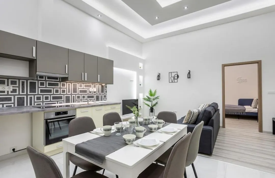 L'appartement New Spacious & Central Home offre une cuisine équipée avec un four et un lave-vaisselle pour votre commodité. L'arrêt de bus Harminckettesek tere est à environ 5 minutes de marche.